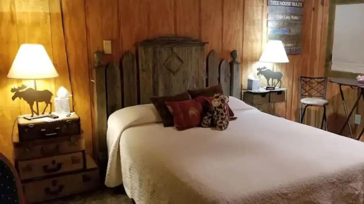 Як найкращий готель типу 'ліжко та сніданок' в Алабамі для пар, номер розкішно оформлений з використанням теплих дерев'яних тонів, що контрастує з розкішною постільною білизною та плюшевими халатами. З вашою власною зоною відпочинку та ванною кімнатою з ванною ваша єдина проблема полягає в тому, що ви не захочете покинути свій номер.